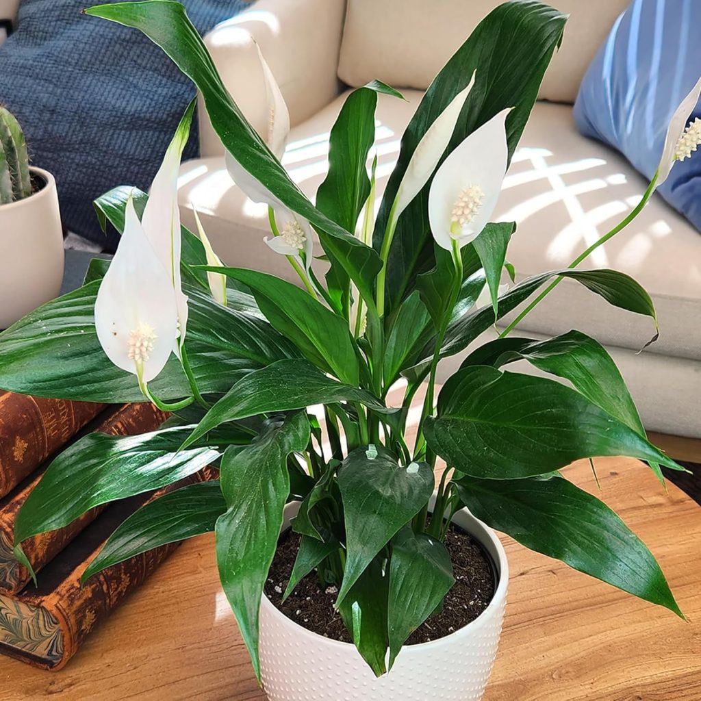 Care tip: Peace lilies prefer low to moderate indirect light. Water when the top inch of soil is dry, and mist the leaves every so often to maintain humidity.
